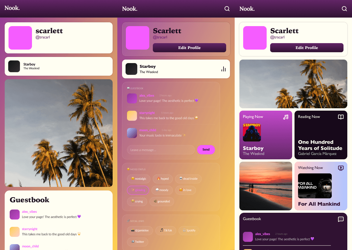 We replaced the standard photo grid with a blank canvas. Users have complete control over their digital space, making every profile a unique reflection of its owner.